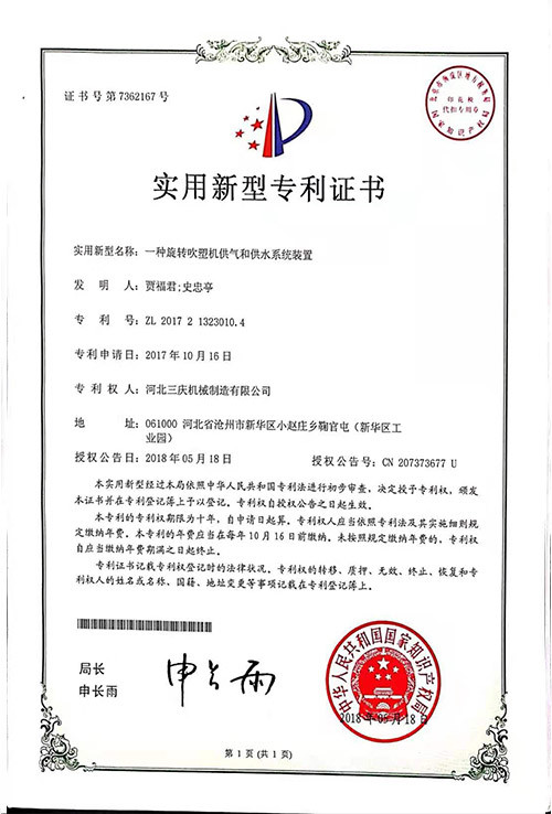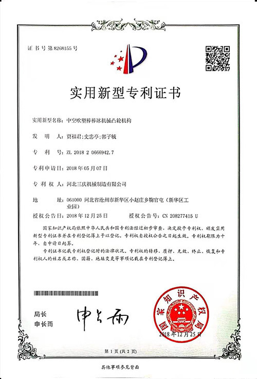 شرکت Sanqing به عنوان یک علامت تجاری معروف در استان هبی ، برنده بسیاری از جوایز تحقیق و توسعه علمی و فناوری شده است ، برای بیش از 40 ثبت اختراع ملی درخواست کرده و بیش از 20 گواهی ثبت اختراع ملی را دریافت کرده است.